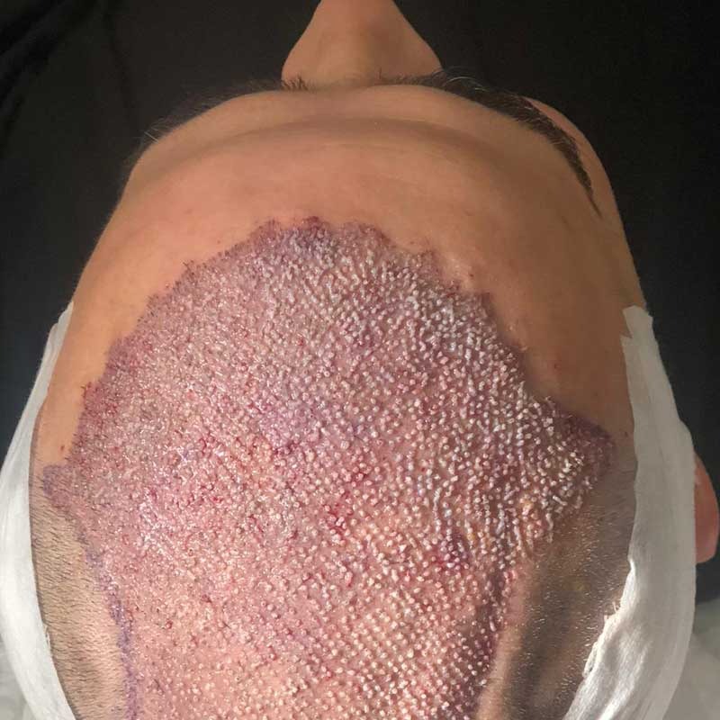 Transplantaten die uit 2-3 haarzakjes bestaan, worden uit de achterkant van het hoofd genomen omdat ze genetisch resistent zijn tegen haaruitval.