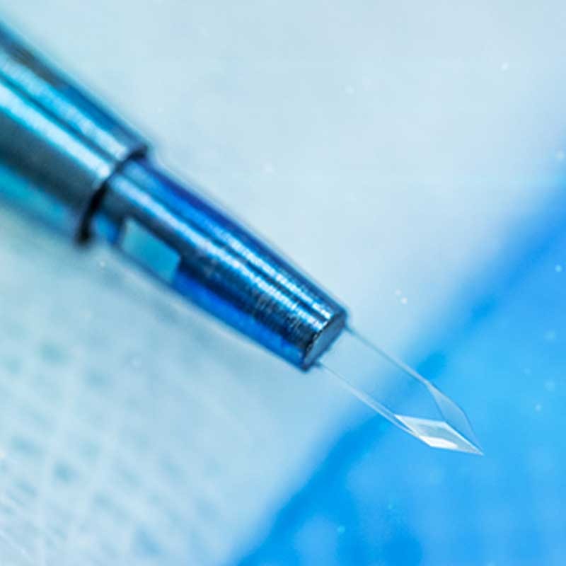 Hoewel de stalen messen die bij de klassieke FUE-methode worden gebruikt doeltreffend zijn, verlengen zij de genezingstijd enigszins omdat zij grotere kanalen openen dan saffiermessen.